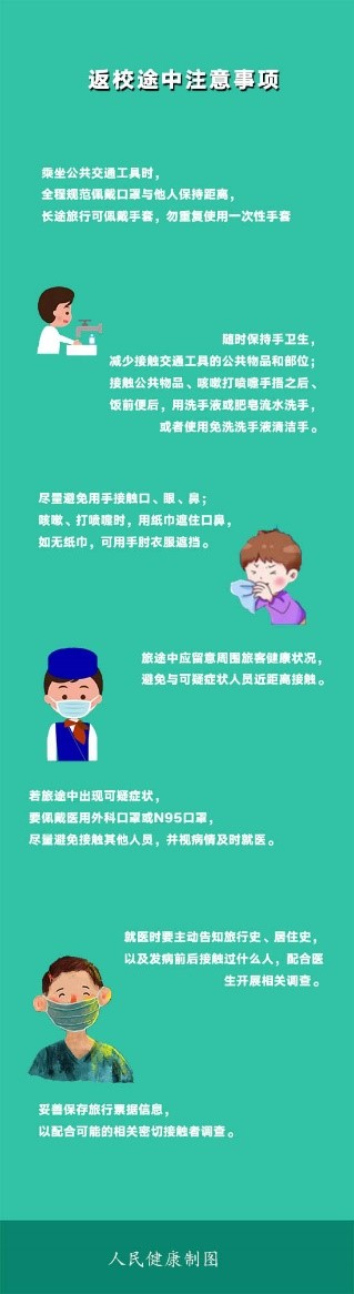 近日,多地明確開學(xué)日期。在即將返校的途中,學(xué)生如何做好自身防護(hù)、開學(xué)期間如何避免交叉感染,這些都是家庭、學(xué)校乃至全社會關(guān)注的重點(diǎn)。下面,健康小編就向大家介紹一下返校途中以及學(xué)生上課后應(yīng)該注意的事項(xiàng)。
