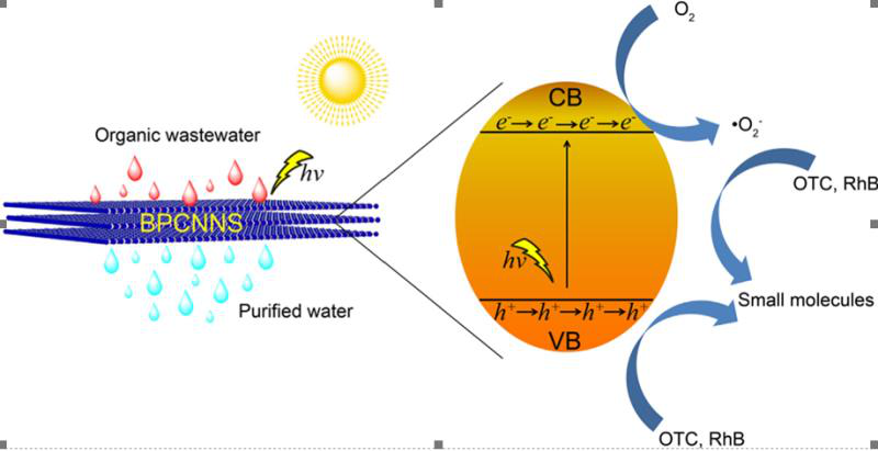 而張歡歡團(tuán)隊(duì)研究的光催化劑的運(yùn)作原理是通過硼、磷元素在氮碳骨架上的共摻雜,改善氮化碳電子結(jié)構(gòu),使催化劑在光激發(fā)下產(chǎn)生較高濃度的光生載流子;同時(shí),通過形貌調(diào)控構(gòu)建超薄二維結(jié)構(gòu),極大縮短催化劑內(nèi)部光生載流子擴(kuò)散至催化劑表面的距離,提高催化劑表面光生載流子的濃度,并通過表面發(fā)生氧化還原反應(yīng)將廢水中的抗生素等有機(jī)污染物降解為無害的小分子?梢哉f,張歡歡團(tuán)隊(duì)創(chuàng)新性地證明元素共摻雜和二維形貌調(diào)控對(duì)于光催化性能的協(xié)同增效作用。