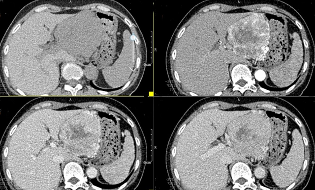 入院后,根據(jù)王女士病情,曹利平教授及其團(tuán)隊(duì)為她制定一套詳盡的術(shù)前檢查和治療方案。首先,安排做上腹部增強(qiáng)CT,并建議其先穿刺活檢明確病理。