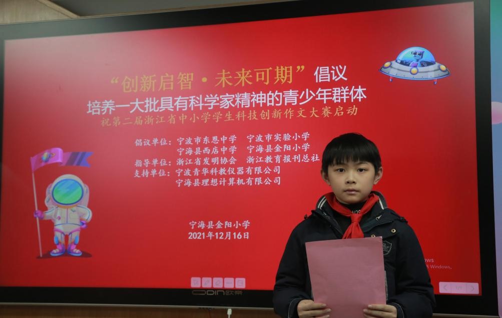12月16日,為積極響應(yīng)、落實(shí)習(xí)近平總書記關(guān)于青少年科技教育重要指示“培養(yǎng)一大批具有科學(xué)家精神的青少年群體”,寧波市東恩中學(xué)、寧波市實(shí)驗(yàn)小學(xué)、寧海縣西店中學(xué)、寧?h金陽小學(xué)等四所學(xué)校共同發(fā)起了“創(chuàng)新啟智未來可期”倡議,提出“每一所學(xué)校舉辦一次校園科技文化節(jié)活動、每一位老師結(jié)對指導(dǎo)學(xué)生至少參加一次科技實(shí)踐活動、每一位學(xué)生寫一篇科技創(chuàng)新作文、每一位家長支持一次孩子科技創(chuàng)新實(shí)踐活動”四個一倡議。