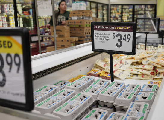 根據(jù)美國農(nóng)業(yè)部4月4日公布的數(shù)據(jù),美國20多個(gè)州暴發(fā)高致病性禽流感疫情,并導(dǎo)致雞蛋價(jià)格猛漲。美國媒體4日?qǐng)?bào)道稱,該國雞蛋均價(jià)已經(jīng)達(dá)到每打2.88美元,相較于2月份發(fā)現(xiàn)首例禽流感確診病例時(shí)上漲了52%。同時(shí),2.88美元也是自2020年初新冠肺炎疫情暴發(fā)以來該國雞蛋均價(jià)的最高水平。圖為4月5日在美國舊金山灣區(qū)米爾布雷一家超市拍攝的雞蛋。