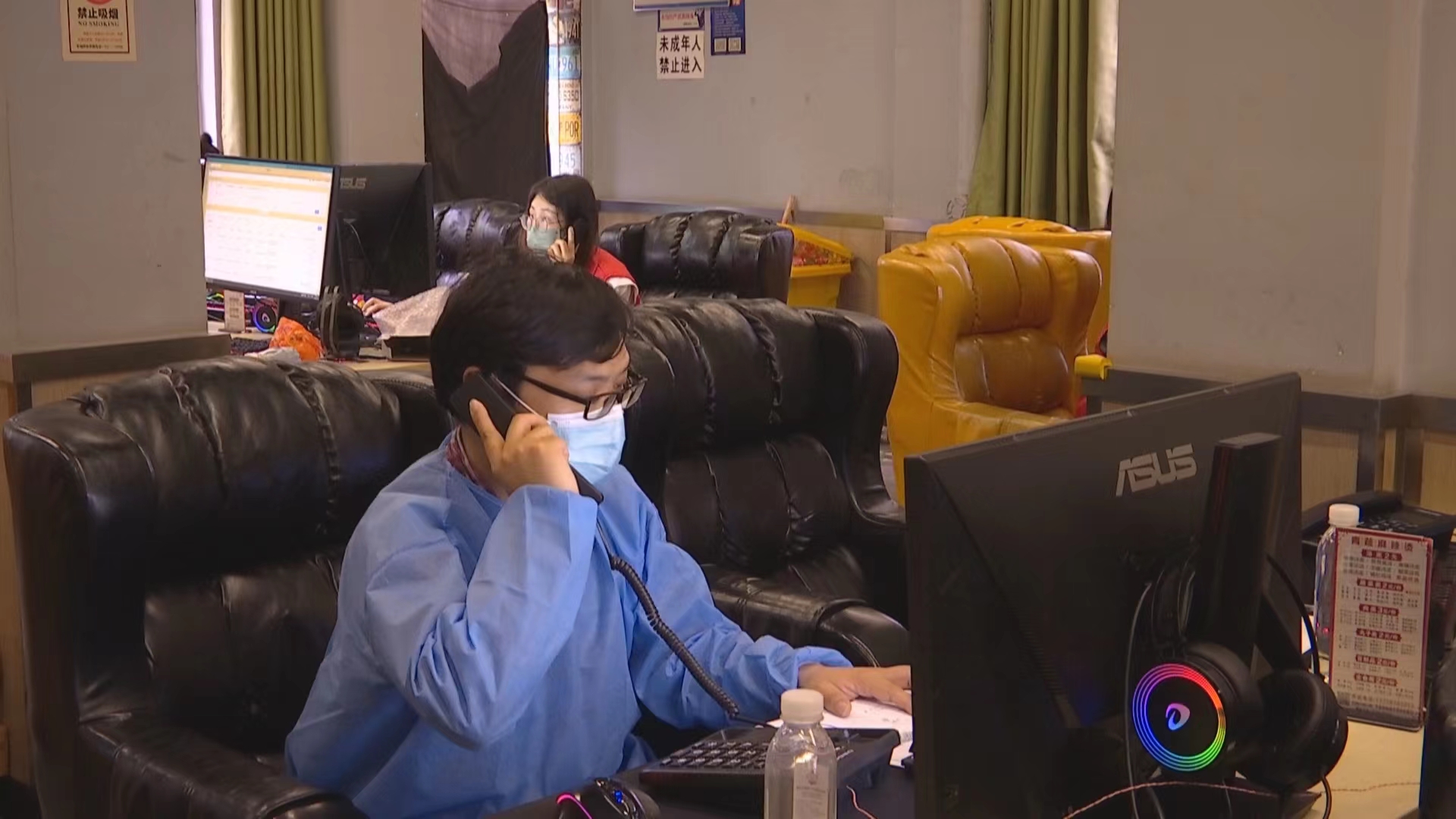 網(wǎng)吧里坐著一個(gè)個(gè)身穿紅馬甲的工作人員,一臺(tái)電腦,一個(gè)電話是標(biāo)配,在不斷更新的海量數(shù)據(jù)中,他們要通過一個(gè)個(gè)電話,捕捉到其中有價(jià)值的信息。這是桐君街道新物色的臨時(shí)流調(diào)“大本營(yíng)”,5月10日上午,當(dāng)接到數(shù)據(jù)平臺(tái)上的重點(diǎn)人員信息時(shí),桐君街道第一時(shí)間將流調(diào)大本營(yíng)搬到了網(wǎng)客網(wǎng)吧中。桐廬縣桐君街道疫情專班負(fù)責(zé)人蔣凱說:“因?yàn)槲覀兛紤]到也沒這么多電腦,臨時(shí)在網(wǎng)吧租用了臨時(shí)場(chǎng)地作為我們辦公場(chǎng)地,來組織縣里的流調(diào)力量。”