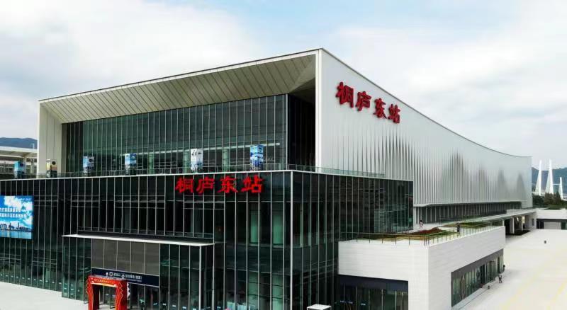 站房總建筑面積3.98萬平方米的桐廬東站,其主體面積1.5萬平方米,共分四層,其中地上三層,地下一層,建筑高度為24.7米,最高聚集人數(shù)600人,站場規(guī)模為4臺8線,總投資達(dá)4.41億元。項目于2021年7月開工建設(shè),今天正式啟用,建設(shè)工期達(dá)14個月。