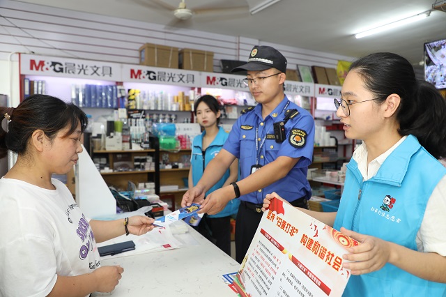 9月23日,吳興區(qū)埭溪鎮(zhèn)文化部門工作人員、行政執(zhí)法人員、網(wǎng)格員在給書店管理人員開展“掃黃打非”宣傳。
