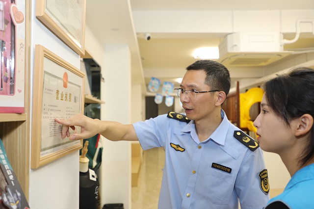 9月23日,吳興區(qū)埭溪鎮(zhèn)市場監(jiān)管所工作人員、網(wǎng)格員在轄區(qū)一家文化培訓機構進行檢查。
