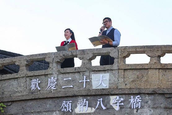 為歡慶黨的二十大勝利召開,認真落實“推進文化自信自強,鑄就社會主義文化新輝煌”,挖掘宋韻文化,宣傳古城人文遺跡,推動文旅深度融合,11月12日,“歡慶二十大頌韻八字橋”第七屆杏林雅集暨越城區(qū)朗誦協(xié)會首屆金秋朗誦會,在紹興越城千年古橋——八字橋舉行,讓社區(qū)居民和廣大游客在自然里共享了一場視聽藝術(shù)盛宴。