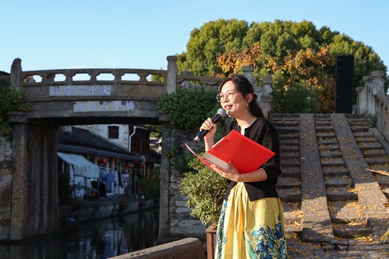 越城區(qū)朗誦協(xié)會、杏林雅集組委會相關(guān)負責(zé)人表示:八字橋是建于宋代的古橋,也是世界最早的立交橋,在這里舉辦雅集,沒有裝飾,我們像行人和游客一樣在八字橋上朗誦,把藝術(shù)與自然進行了有機融合,從八字橋啟程,以銀杏的鄉(xiāng)愁壓軸,既是把風(fēng)雅的朗誦帶進社區(qū)居民生活的日常和游客的視野,為文旅融合貢獻朗誦的力量;也是為打造“宋韻文化傳世工程”、宣傳紹興古城歷史人文遺跡,展示越城朗誦人的風(fēng)采;更是落實習(xí)近平總書記“推進文化自信自強,鑄就社會主義文化新輝煌”和促進文藝共富、文化先行的積極實踐!