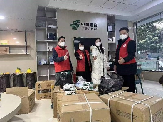 早在兩天前,永嘉縣紅十三愛(ài)心社社長(zhǎng)邵若珍得知山區(qū)文化禮堂需要防疫物資,第一時(shí)間對(duì)接縣委宣傳部,認(rèn)領(lǐng)免費(fèi)提供首批防疫物資。認(rèn)領(lǐng)后,邵若珍和愛(ài)心社社員們便馬上行動(dòng)起來(lái),到處打聽(tīng)購(gòu)買渠道,最短時(shí)間內(nèi)全力籌更多的物資。兩天里,邵若珍電話不停、步履不停,終于在平臺(tái)點(diǎn)單日把防疫物資搬運(yùn)到車上,運(yùn)送到永嘉郵政。這批“愛(ài)心防疫禮包”由永嘉郵政免費(fèi)配送給各文化禮堂,這條郵路也成了一條“愛(ài)心之路”。