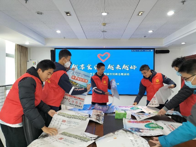 圖為:紹興一中高一(4)班的學(xué)生志愿者在整理宣傳海報(bào)