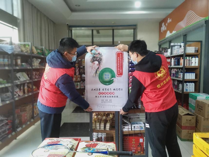 同學(xué)們首先協(xié)助市場(chǎng)監(jiān)管工作人員對(duì)100余份國(guó)創(chuàng)的宣傳資料,根據(jù)不同的企業(yè)業(yè)態(tài)、轄區(qū)進(jìn)行了分類(lèi)、整理和打包。隨后,同學(xué)們以小組為單位,來(lái)到商鋪、超市等重點(diǎn)場(chǎng)所,現(xiàn)場(chǎng)張貼宣傳海報(bào),開(kāi)展上門(mén)宣傳。