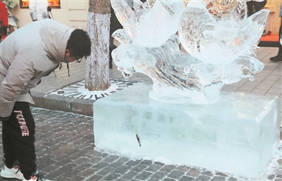 之后,網(wǎng)友們開始尋找各地冰雕中的魚。還有一些“熱心群眾”用鏟子將冰雕里的魚“營(yíng)救”出來(lái)。
