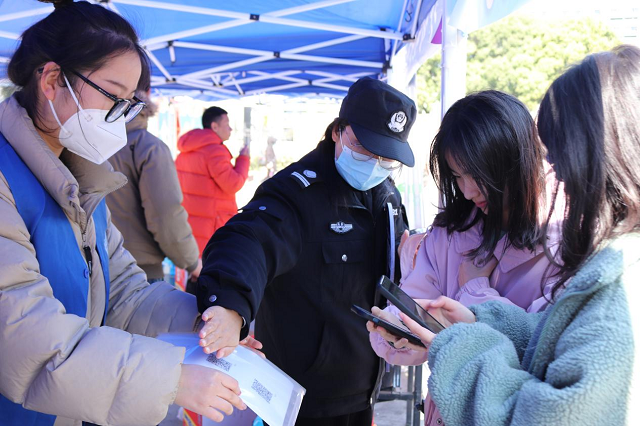 2月14日,杭州市錢塘區(qū)白楊街道云濱社區(qū)黨支部聯(lián)合“青春絳林”大黨委黨建聯(lián)建單位白楊派出所將干貨滿滿的“反詐禮包”送進(jìn)杭州師范大學(xué)校門,為高校青年學(xué)子拉響“安全警報(bào)”,筑起“青春防護(hù)墻”。