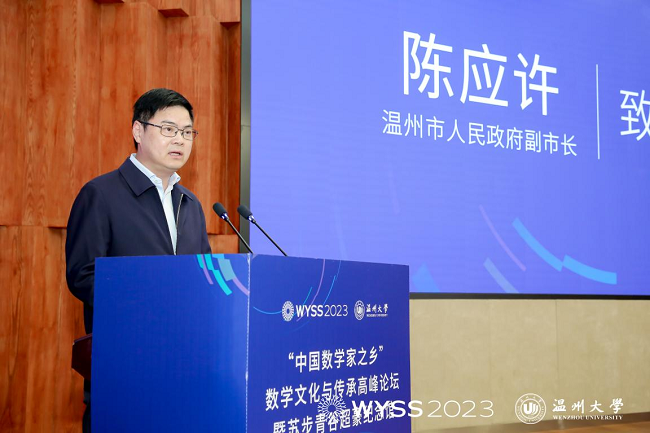 溫州市人民政府副市長陳應(yīng)許表示,溫州素有“東南小鄒魯”之稱,也是中國數(shù)學(xué)家的搖籃,被譽(yù)為“數(shù)學(xué)家之鄉(xiāng)”。新時(shí)代,溫州擦亮“數(shù)學(xué)家之鄉(xiāng)”金字招牌是綿綿用力,久久為功,例如,打造了世界青年科學(xué)家峰會(huì)、中國數(shù)學(xué)教育研討會(huì)、溫籍?dāng)?shù)學(xué)家研究中心、溫籍?dāng)?shù)學(xué)家長廊等多種平臺(tái),出臺(tái)了《溫州數(shù)學(xué)家家園建設(shè)方案》,充分發(fā)揮溫籍?dāng)?shù)學(xué)家資源豐富的獨(dú)特優(yōu)勢(shì),加速引育一批國內(nèi)外數(shù)學(xué)家等等。他在致辭中提出三點(diǎn)建議意見:一是匯聚最強(qiáng)大腦,助力溫州加強(qiáng)數(shù)學(xué)基礎(chǔ)研究;二是匯聚最強(qiáng)資源,助力溫州加強(qiáng)數(shù)學(xué)人才的培養(yǎng);三是匯聚最優(yōu)人才,助力溫州建設(shè)人才創(chuàng)新高地,希望得到院士、專家的幫助和支持,共同擦亮溫州“數(shù)學(xué)家之鄉(xiāng)”城市金名片。