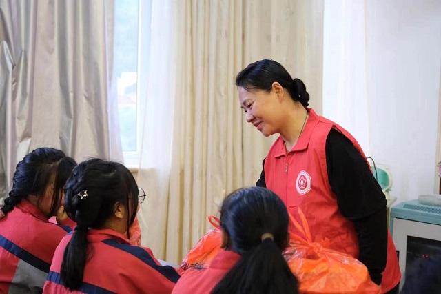 據(jù)悉,這是紅十三愛心社第九年走進(jìn)巽宅中學(xué)開展結(jié)對幫扶活動(dòng)。從2015年開始,紅十三愛心社在巽宅中學(xué)常態(tài)開展“五個(gè)一”活動(dòng),即每學(xué)年至少到他們家中走訪一次、至少與他們談心一次、至少與他們班主任聯(lián)系一次、至少與他們臨時(shí)監(jiān)護(hù)人溝通一次、至少給予他們助學(xué)金一次,為學(xué)生們健康成長提供一個(gè)良好的環(huán)境,引導(dǎo)他們樹立“自信、樂觀”的心態(tài)。