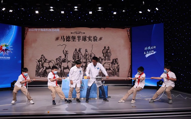 日前,寧?h孔布利多科學(xué)真探社的5位老師,助陣寧波市海曙區(qū)廣德湖小學(xué)第十屆科技節(jié),為該校師生帶去了一場(chǎng)“科幻視覺盛宴”:馬德堡半球、空氣炮、液氮、乒乓球射擊等科學(xué)實(shí)驗(yàn),讓同學(xué)們驚嘆連連、贊不絕口。