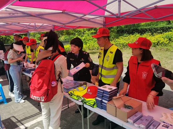 此外,現(xiàn)場還設(shè)置了禁毒、反邪、反恐以及交通安全咨詢臺,在展示區(qū)擺放了宣傳展板,反詐宣傳員們向師生發(fā)放印有防范電信詐騙、反邪教、反恐防暴、打擊毒品犯罪、校園交通安全等內(nèi)容的宣傳材料。