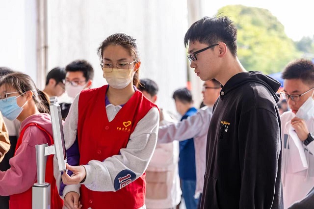 今年報考中國計量大學“三位一體”招生考試的考生數(shù)大幅度增加,為加強考試管理,學校制定考試安全保障措施,切實加強考生的身份驗證,確?荚嚬焦W校嚴格審查考生身份和報名條件,使用刷臉身份驗證儀,對考生進行身份驗證;使用配備金屬探測儀和安檢門,嚴防考生攜帶手機進入考場;考場內(nèi)設置信息屏蔽儀,防止考生使用通訊設備。