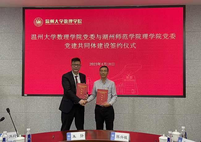 為發(fā)揮黨建引領(lǐng)作用,促進(jìn)黨建與業(yè)務(wù)工作深度融合,近日,溫州大學(xué)數(shù)理學(xué)院與湖州師范學(xué)院理學(xué)院簽署《黨建共同體建設(shè)備忘錄》,圍繞雙方學(xué)科特色聚力促進(jìn)基礎(chǔ)學(xué)科研究。