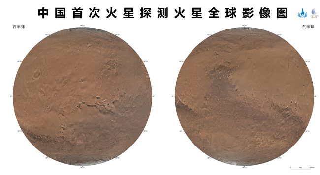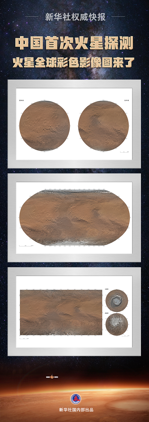 本次發(fā)布的影像圖為彩色,包括按照制圖標(biāo)準(zhǔn)分別制作的火星東西半球正射投影圖、魯賓遜投影圖和墨卡托投影加方位投影圖,空間分辨率為76米,將為開展火星探測(cè)工程和火星科學(xué)研究提供質(zhì)量更好的基礎(chǔ)底圖。