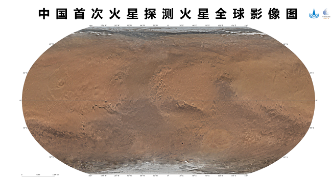 我國(guó)首次火星探測(cè)任務(wù)——天問一號(hào)獲取的包括影像圖在內(nèi)的一批科學(xué)探測(cè)數(shù)據(jù),將為人類深入認(rèn)知火星作出中國(guó)貢獻(xiàn)。天問一號(hào)任務(wù)環(huán)繞器中分辨率相機(jī),于2021年11月至2022年7月歷時(shí)8個(gè)月,實(shí)施了284軌次遙感成像,對(duì)火星表面實(shí)現(xiàn)了全球覆蓋。地面應(yīng)用系統(tǒng)對(duì)獲取的14757幅影像數(shù)據(jù)進(jìn)行處理后得到火星全球彩色影像圖。