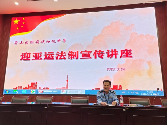 5月24日,杭州市蕭山區(qū)衙前派出所民警屠友富以法治副校長的身份走進衙前鎮(zhèn)初級中學,為學校師生開展了一堂生動有趣的“反電信詐騙”專題法治課。