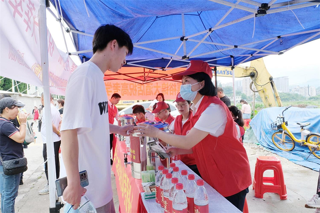 十年磨一劍,今朝試霜刃。今年溫州永嘉參加夏季高考統(tǒng)一考試共6475名考生,全縣設(shè)6個(gè)考點(diǎn)。6月7日,為助力考生乘風(fēng)破浪、金榜題名,溫州電力紅十三愛(ài)心社在永嘉縣職業(yè)中學(xué)設(shè)置“愛(ài)心助考服務(wù)點(diǎn)”,護(hù)航高考學(xué)子圓夢(mèng)路。