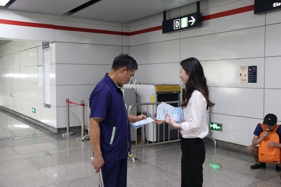 有效利用區(qū)位便利,提高線下受眾覆蓋面。6月15日集中宣傳日當(dāng)天,稠州金租組織員工前往CBD附近寫(xiě)字樓宇、地鐵口、公交車站、便利店等人流量較大區(qū)域發(fā)放2023年普及金融知識(shí)萬(wàn)里行宣傳折頁(yè),并對(duì)來(lái)往人員詳細(xì)闡述非法集資的危害性。同時(shí),在集團(tuán)辦公大樓一樓大廳電子門(mén)楣顯示屏24小時(shí)滾動(dòng)播放宣傳標(biāo)語(yǔ),擺放金融知識(shí)宣傳折頁(yè)、展架等相關(guān)宣教資料,讓來(lái)往客戶和員工了解金融知識(shí),提高警惕,增強(qiáng)保護(hù)“錢(qián)袋子”的安全意識(shí)。
