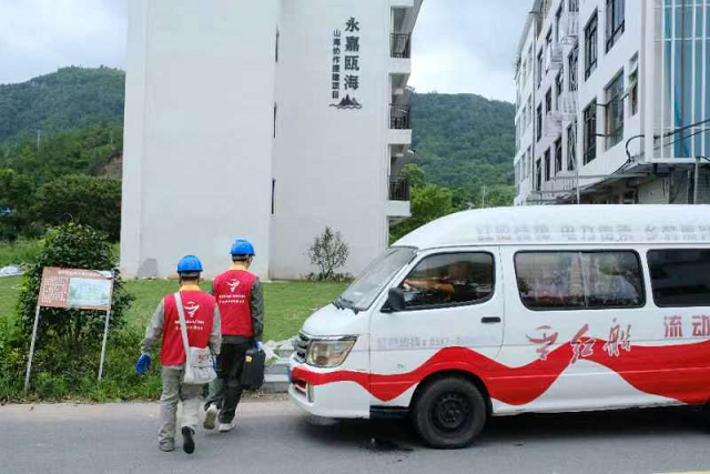 7月29日,國(guó)網(wǎng)永嘉縣供電公司紅船·流動(dòng)電力驛站繞著山路前往鑊爐村、西爐村等地6個(gè)緊急避災(zāi)點(diǎn)進(jìn)行用電檢查,為轉(zhuǎn)移安置人員編織防汛防臺(tái)安全網(wǎng)。