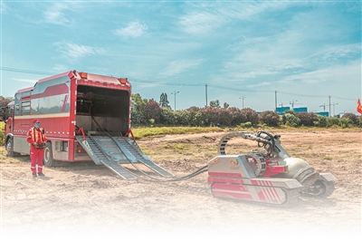 當(dāng)內(nèi)澇災(zāi)害發(fā)生時(shí),母車?吭诳拷鼉(nèi)澇區(qū)域的安全位置,隨后釋放“子車”下水進(jìn)行作業(yè)。工作人員可以遠(yuǎn)程遙控“子車”,其最遠(yuǎn)可以在距離“母車”近百米的位置開展遠(yuǎn)程作業(yè)。由于身形小巧,“子車”可以實(shí)現(xiàn)全地形移動(dòng),能夠深入到人員和大型車輛無(wú)法到達(dá)的受災(zāi)區(qū)域,例如城市中常見的地下室、地下車庫(kù)、地下商場(chǎng)等,實(shí)現(xiàn)安全、高效排澇救災(zāi)。