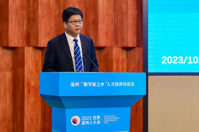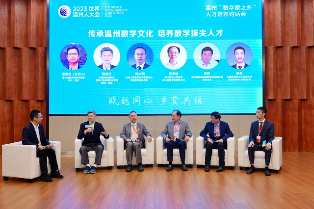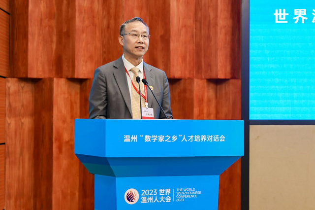 10月14日,由世界溫州人聯(lián)誼總會(huì)主辦,溫州大學(xué)、溫州市教育局、世界溫州人聯(lián)誼總會(huì)數(shù)學(xué)分會(huì)承辦,溫州大學(xué)數(shù)理學(xué)院和溫州市教育教學(xué)研究院執(zhí)行的2023世界溫州人大會(huì)溫州“數(shù)學(xué)家之鄉(xiāng)”人才培養(yǎng)對(duì)話會(huì)在溫州大學(xué)舉行。