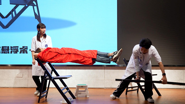 展演內(nèi)容主要包括自選實驗與評委問答兩部分。在自選實驗中,各代表隊根據(jù)“熱愛科學(xué)崇尚科學(xué)”主題,圍繞傳播科學(xué)思想、科學(xué)知識或傳授科學(xué)方法,從航天航海到到分子基因,從量子通信到土壤沙礫,從物理化學(xué)到生物醫(yī)學(xué),從自然世界到人類社會等,分別自行確定了展演具體內(nèi)容,其中物理學(xué)科作品約占41.67%、化學(xué)學(xué)科約占16.67%、生物學(xué)科和醫(yī)學(xué)約各占20.83%。在展演編排設(shè)計上,各代表隊或是從現(xiàn)象入手,進而揭示其中蘊含的科學(xué)原理;或是從原理開始,接著直接闡述其在某一領(lǐng)域中的實際應(yīng)用;或是從正面著手,推介事物本身所包含的科學(xué)知識與方法;或是從反面切入,批駁種種似是而非的偽科學(xué)、反科學(xué)的欺詐與騙局。在展演舞臺呈現(xiàn)上,各代表隊或是工筆寫實,一絲不茍;或是潑墨寫意,虛虛實實;或是夸張幽默,令人忍俊不禁;或是上下互動,引來片片喝彩掌聲。在展演實際效果上,各代表隊以通俗易懂的語言、喜聞樂見的方式展現(xiàn)科學(xué)實驗原理與方法,使人在思想輕松、精神愉悅的氛圍中接受了一次科學(xué)文化的精神洗禮,領(lǐng)略了一次科學(xué)與藝術(shù)融合的獨特魅力。