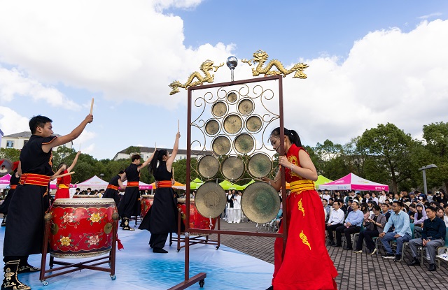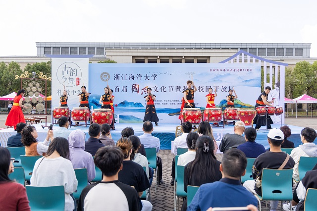 10月21日上午,浙江海洋大學(xué)新城校區(qū)秋陽(yáng)高照,人群熙攘。在國(guó)家級(jí)非遺項(xiàng)目舟山鑼鼓氣勢(shì)磅礴的演奏聲中,以“古韻今輝,禮敬中華”為主題的首屆國(guó)風(fēng)文化節(jié)活動(dòng)正式拉開(kāi)帷幕。