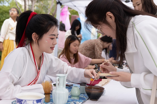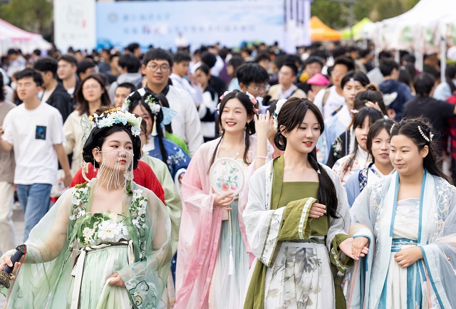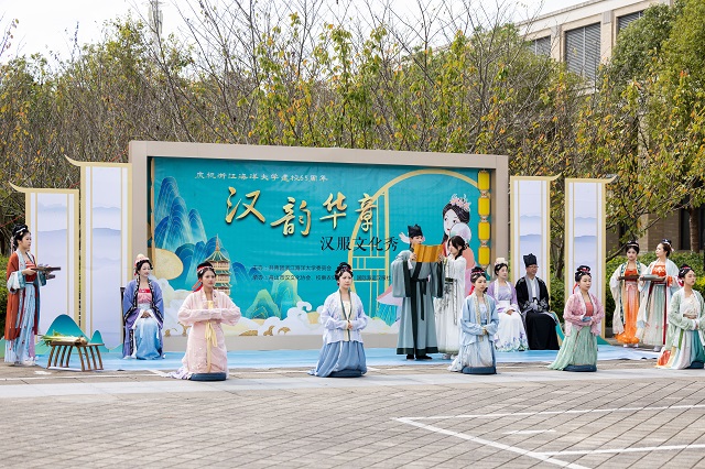 本次國(guó)風(fēng)文化節(jié)推出了十大主場(chǎng)活動(dòng)和十大學(xué)院分會(huì)場(chǎng)活動(dòng)。其中,“古韻煥美”國(guó)風(fēng)潮市集帶來(lái)了各類(lèi)傳統(tǒng)美食、傳統(tǒng)手作和古風(fēng)飾品,富有濃濃傳統(tǒng)文化氣息的生活市集,為師生和市民帶來(lái)了獨(dú)特的游園體驗(yàn)。秋風(fēng)起,佳景時(shí),“曲韻流芳”戲曲面對(duì)面活動(dòng)設(shè)置了折子戲表演、戲劇妝造展示、戲劇周邊互動(dòng)、戲曲臉譜作品展等環(huán)節(jié),彰顯中國(guó)戲曲文化的深厚底蘊(yùn)!皾h韻華章”漢服文化展演秀選擇以漢服成人禮、歷朝漢服秀、留學(xué)生漢服交流、旗袍走秀等活動(dòng)內(nèi)容,將歷朝服飾之美融入當(dāng)下校園生活,增強(qiáng)師生華夏民族文化自信!昂m崅鞒小狈沁z體驗(yàn)項(xiàng)目則邀請(qǐng)漁民號(hào)子、舟山船模、海洋剪紙、漁繩結(jié)、海洋刺繡、海洋布藝等眾多非遺傳承人進(jìn)校,開(kāi)展非遺項(xiàng)目展覽體驗(yàn)活動(dòng),弘揚(yáng)舟山海洋文化的獨(dú)特魅力。師生和市民紛紛表示,浙江海洋大學(xué)國(guó)風(fēng)文化節(jié)是繼校園櫻花節(jié)后最盛大的活動(dòng),開(kāi)放的姿態(tài)是吸引觀眾的最大亮點(diǎn)。