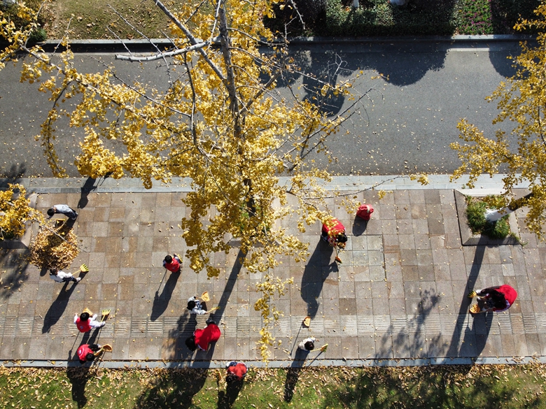 初冬已至,氣溫驟降,浙江省長興縣太湖街道中心幼兒園附近出現(xiàn)了大量落葉,影響了環(huán)境衛(wèi)生。日前,太湖街道彭城村新時代文明實踐站的志愿者帶領(lǐng)幼兒園的小朋友一起清掃落葉、清除垃圾,共同讓道路變得更加整潔。