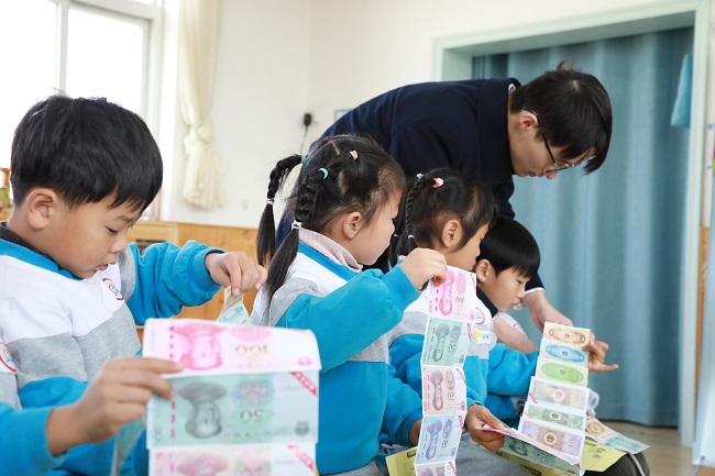 為了開(kāi)闊孩子們的視野,讓孩子們了解不同面值的人民幣紙幣的特征、種類、用途等,豐富幼兒的社會(huì)知識(shí),12月20日,浙江長(zhǎng)興縣太湖街道中心幼兒園邀請(qǐng)長(zhǎng)興農(nóng)商銀行新塘支行的工作人員走進(jìn)幼兒園,教大班兒童認(rèn)識(shí)人民幣,開(kāi)展人民幣科普,幫助幼兒園老師和小朋友們?cè)鰪?qiáng)防偽、反詐意識(shí)。(通訊員 馮曼)