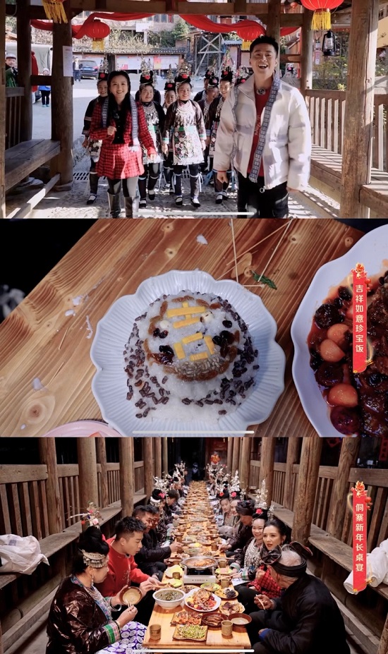 如果說東北人招待客人的最高禮儀是進屋上炕,那么在貴州黔東南,這里的人們則習慣用歌舞來表達熱情。2月5日,明星何潔與鮮肉廚師帶著屏幕前的老鐵來到了貴州侗寨,與當?shù)匾黄鹄相l(xiāng)親手制作了充滿地域特色的“長桌宴”,在美食美酒、載歌載舞中歡度春節(jié)。