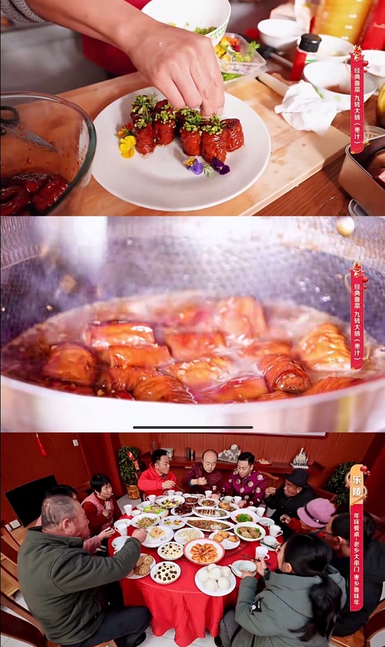 魯菜作為八大菜系之一,可以說是年夜飯中的?。直播中,高炳義師徒將國宴魯菜中的封神配方一一解鎖,用棗汁做澆頭的九轉大腸、國宴級名菜紅棗煨牛肉、特色傳統(tǒng)名菜清蒸麒麟加吉魚、又鮮又嫩的蔥爆羊肉、餐桌上必備的鲅魚水餃……在魯味傳統(tǒng)美食文化的傳承與演繹中,屏幕前的老鐵認真記著筆記,學會了都能在年夜飯上露一手。