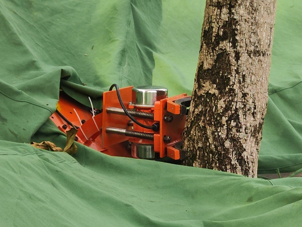 去年11月,團(tuán)隊研發(fā)的折展式林果采收一體機獲得了國家發(fā)明專利,并已成功組裝生產(chǎn)。前不久,研發(fā)團(tuán)隊與諸暨市千翼網(wǎng)絡(luò)科技工作室達(dá)成合作,在生產(chǎn)設(shè)備的同時,開始在寧波余姚、杭州臨安、衢州開化等地進(jìn)行實際運用。實測發(fā)現(xiàn),一臺折展式倒傘型林果收集裝置效率相當(dāng)于20個農(nóng)民,一臺采收一體機工作效率相當(dāng)于48個農(nóng)民。