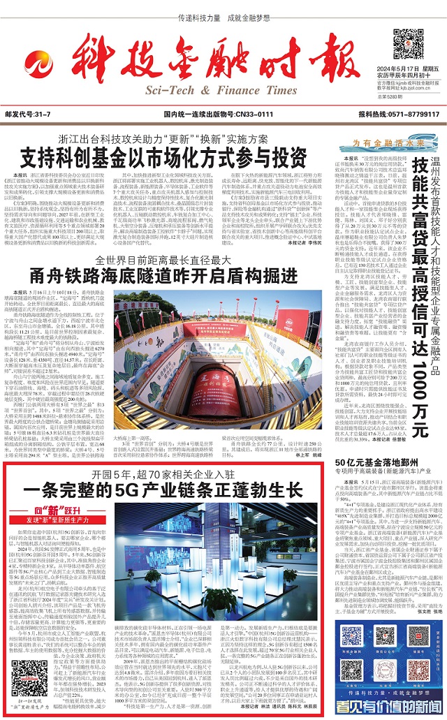 編者按》》》眼下,浙江正全力以赴“在以科技創(chuàng)新塑造發(fā)展新優(yōu)勢(shì)上走在前列”,科技金融時(shí)報(bào)全媒體推出“向‘新’躍升——發(fā)現(xiàn)‘浙’里新質(zhì)生產(chǎn)力”系列報(bào)道,深度挖掘一批在發(fā)展新質(zhì)生產(chǎn)力上敢打頭陣、勇當(dāng)先鋒、爭(zhēng)當(dāng)尖兵的典型。