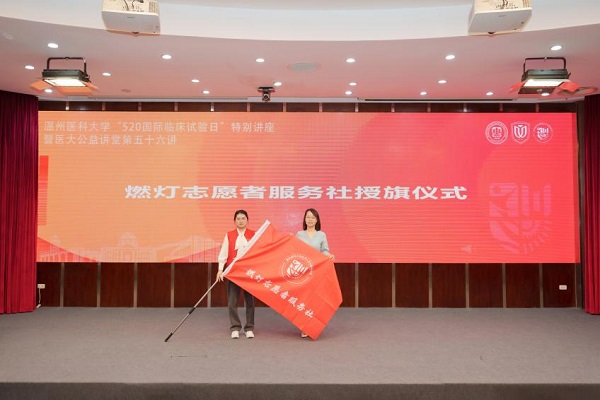 活動現(xiàn)場還舉行了燃燈志愿服務(wù)社授旗儀式。接下來,該服務(wù)社將在學(xué)校附屬醫(yī)院臨床試驗(yàn)中心指導(dǎo)下開展臨床試驗(yàn)相關(guān)實(shí)踐和志愿服務(wù)工作。