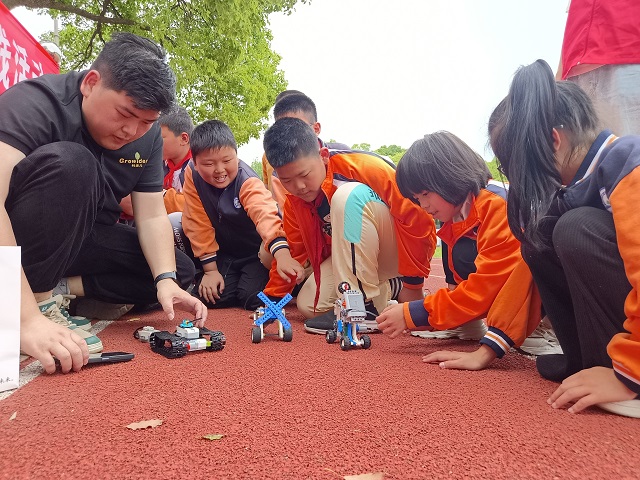隨后,師生們來到了寬闊的操場,這里早已布置好了一系列科技展示區(qū)域。孩子們紛紛圍上前來,好奇地觀察著各種機器人和科技設備的運作。一些孩子還親自體驗了編程操作,通過簡單的指令,讓機器人完成了一系列動作,孩子們的臉上洋溢著興奮和自豪的笑容。