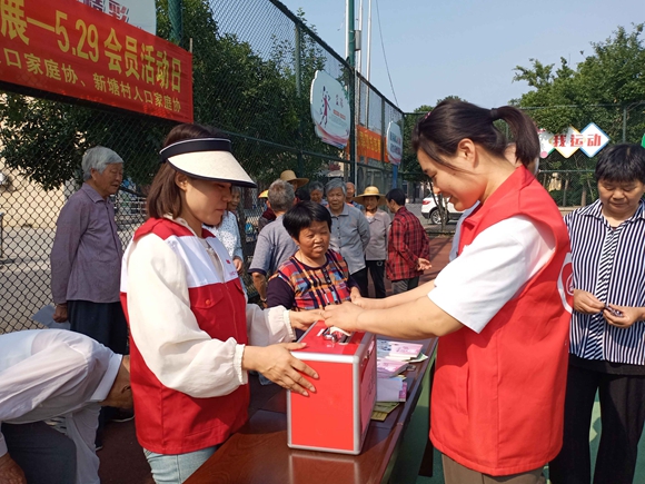 活動(dòng)現(xiàn)場(chǎng),人口家庭協(xié)會(huì)會(huì)員及紅十字會(huì)志愿者通過(guò)懸掛橫幅、擺放展版、發(fā)放《新時(shí)代婚育文化倡議書》等形式,向村民宣傳新時(shí)代婚育新風(fēng)、權(quán)益維護(hù)、政策解讀、家庭健康等知識(shí),鼓勵(lì)村民進(jìn)行孕前優(yōu)生健康檢查、適齡婦女兩癌篩查等。隨后,志愿者對(duì)相關(guān)內(nèi)容進(jìn)行有獎(jiǎng)問答,轄區(qū)村民踴躍參與。志愿者還為困難家庭開展了“愛心一元捐”活動(dòng),大家紛紛獻(xiàn)出自己的一份愛心,為困難家庭伸出援助之手。