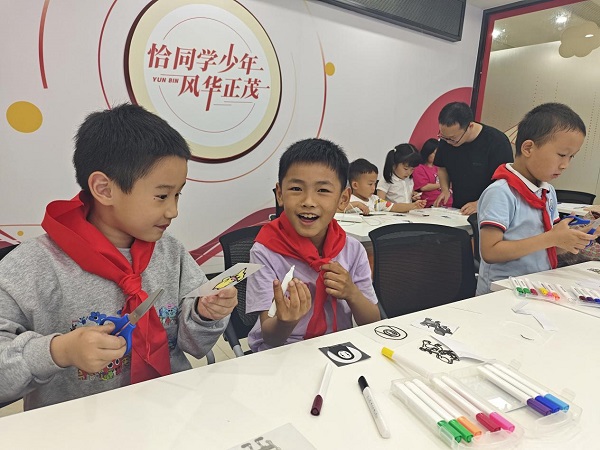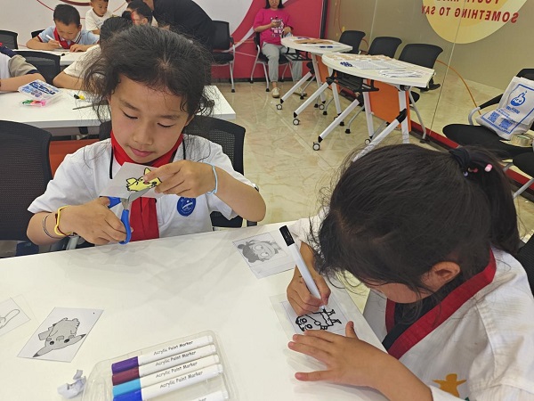 隨后,在公益老師的指導(dǎo)下,孩子們開始動手制作自己的熱縮片鑰匙扣。選材、描圖、涂色、裁剪......孩子們積極動手操作,相互討論,總結(jié)探索!拔业钠たㄇ鹞舶投伎炜床灰娏,畫的時候不夠長,熱縮片縮小后就顯得更短了!倍昙壍囊滓撂嵝研』锇閭円紤]熱縮片縮小后圖形變化;“我觀察后發(fā)現(xiàn)吹熱縮片要從外面一圈一圈地慢慢往中間吹,最后再用板壓平!本妥x三年級的陳雨則發(fā)現(xiàn)了吹熱縮片時的小技巧。小朋友們你一言我一語分享訣竅,糾正錯誤,相互幫助,再一次動手的時候,看著一個個精美的鑰匙扣,成就感滿滿。