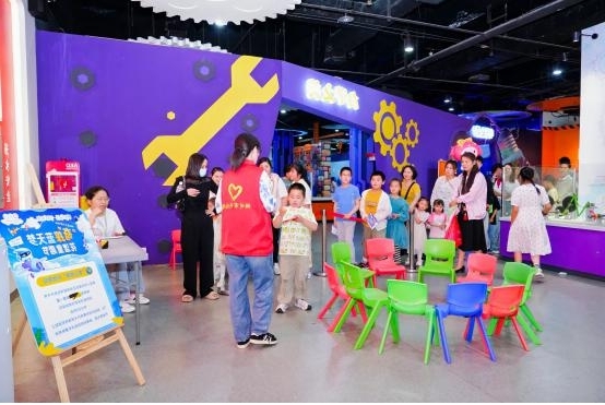 無游戲不童年?鞓返牧辉跄苋鄙儆螆@會來助興?童趣游園會設(shè)置趣味紙飛機(jī)、滾滾保齡球、掌上明珠、蛋殼投球、舞動“奇”跡、童趣套圈圈等環(huán)節(jié),通過打卡闖關(guān)的形式將科學(xué)知識以寓教于樂的方式呈現(xiàn)給青少年,不僅有趣也更有意義。此外,現(xiàn)場設(shè)置了三場聚焦人工智能、環(huán)保科技等主題的實(shí)驗(yàn)互動,讓孩子們更直觀得了解科學(xué)原理和應(yīng)用。還設(shè)置了奇奇人偶舞蹈互動。奇奇可愛俏皮的音樂加上憨態(tài)可掬的舞蹈動作,使得整個活動現(xiàn)場熱鬧非凡,F(xiàn)場觀演的爸爸媽媽也都忍不住拿出手機(jī),紛紛記錄下寶貝們珍貴的表演畫面。