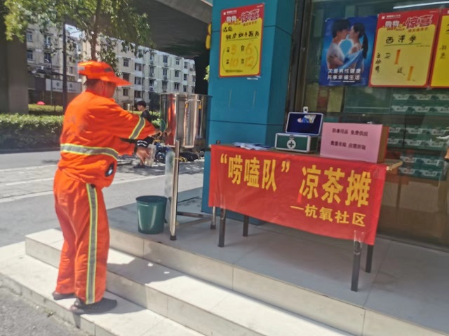 近日,杭州市拱墅區(qū)東新街道杭氧社區(qū)黨群服務(wù)中心門口設(shè)立了一個(gè)“愛(ài)心涼茶攤”,專為環(huán)衛(wèi)工人、外賣小哥、快遞員、交警等戶外工作者及過(guò)往居民提供免費(fèi)的涼茶和防暑藥品。據(jù)悉,杭氧社區(qū)涼茶攤開(kāi)放時(shí)間為每天11:00-16:00,將持續(xù)開(kāi)放到8月底。(冷耀聞)