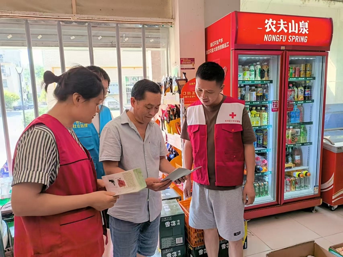協(xié)管員用通俗易懂的語言向村民介紹食品安全小知識,引導(dǎo)村民科學合理、健康飲食。與此同時,協(xié)管員到轄區(qū)內(nèi)的餐飲店、副食店等經(jīng)營場所,通過發(fā)放宣傳折頁、宣傳手冊等方式普及食品安全、消防安全、垃圾分類等知識,要求嚴禁銷售“三無”過期食品,提醒商戶要加強經(jīng)營場所的衛(wèi)生清潔,做到每天消毒、垃圾及時分類清理,引導(dǎo)商戶把安全根植于心,一起守護“舌尖上的安全”。