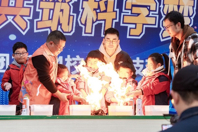 活動現(xiàn)場,無人機(jī)、火箭、火焰掌、馬德堡半球?qū)嶒灥软椖勘M數(shù)登臺亮相,展出的近百余件學(xué)生制作的科技創(chuàng)新作品,內(nèi)容涵蓋科學(xué)普及、科技創(chuàng)新、科技調(diào)研到實踐探索,成果內(nèi)容豐富、形式多樣。其中,不乏關(guān)注生活、關(guān)注社會,采取探索項目式、跨學(xué)科學(xué)習(xí),展現(xiàn)學(xué)生解決問題能力的科創(chuàng)作品。