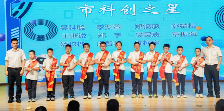“今天,你們都是未來的科學(xué)家!”縉云縣實(shí)驗(yàn)小學(xué)教育集團(tuán)陳曉暉校長(zhǎng)在致辭中,用充滿感染力的話語鼓勵(lì)孩子們大膽探索。隨后,活動(dòng)為在2024學(xué)年麗水市及縣級(jí)科技大賽中斬獲佳績(jī)的“科創(chuàng)之星”頒發(fā)獎(jiǎng)杯,閃耀的獎(jiǎng)牌不僅是榮譽(yù)見證,更成為臺(tái)下小觀眾眼中“科技榜樣”的具象化符號(hào)。