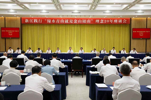 浙江在線8月11日訊(記者余勤陸樂(lè))2005年8月15日,時(shí)任浙江省委書(shū)記習(xí)近平同志在安吉余村首次創(chuàng)造性提出綠水青山就是金山銀山的重要理念,率先開(kāi)啟人與自然和諧共生的中國(guó)式現(xiàn)代化省域?qū)嵺`。今天上午,浙江踐行“綠水青山就是金山銀山”理念20年座談會(huì)在安吉縣召開(kāi),總結(jié)回顧20年來(lái)取得的豐碩實(shí)踐成果、制度成果和理論成果,深刻感悟習(xí)近平生態(tài)文明思想的真理力量和實(shí)踐偉力,深入踐行綠水青山就是金山銀山理念,進(jìn)一步加快綠色發(fā)展、促進(jìn)人與自然和諧共生,推動(dòng)開(kāi)辟生態(tài)文明建設(shè)新境界。