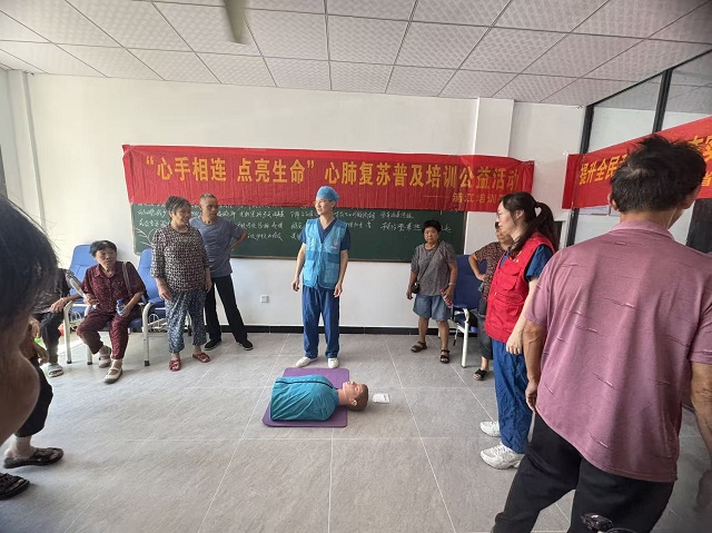 隨后進(jìn)行的心肺復(fù)蘇實(shí)操培訓(xùn)環(huán)節(jié),科普志愿者借助模擬人演示了意識判斷、緊急呼救、胸外按壓及人工呼吸等關(guān)鍵步驟。通過“手把手”教學(xué),許多村民初步掌握了心肺復(fù)蘇的基本技能,提高了在突發(fā)情況下實(shí)施應(yīng)急救助的能力。